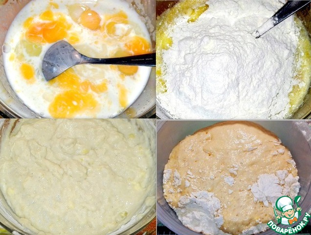 разбила яйца и перемешала. Просеяла 300 г муки.