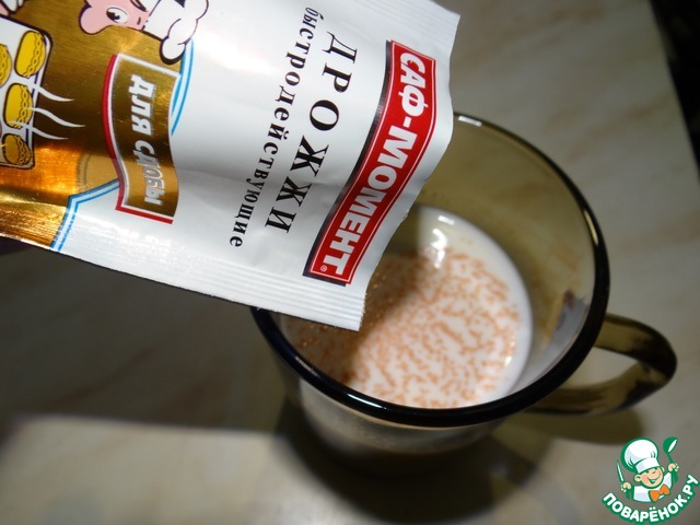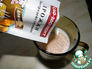 В теплом молоке с сахаром растворить дрожжи и оставить на 15 минут.