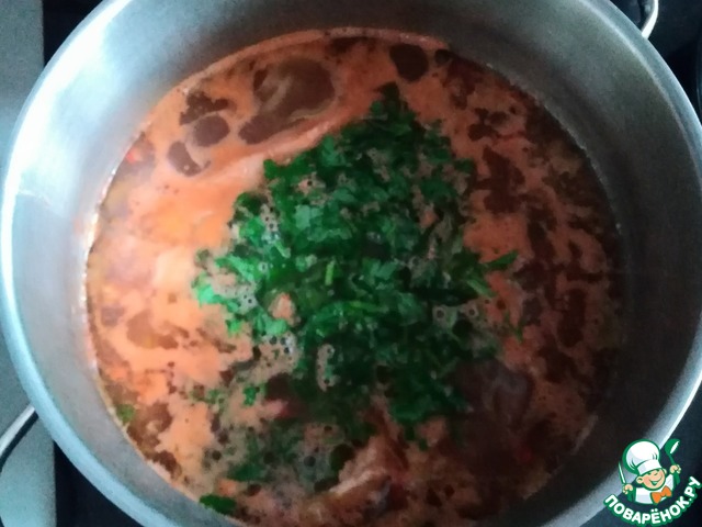 Петрушку засыпаем в конце варки. Суп оставляем настаиваться 20 минут минимум.
