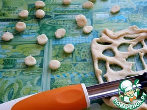 Пока варится бульон, можно из теста нарезать или нарвать руками клецки. Мне захотелось немножко выпендриться и я нарезала клецки с помощью яблочной сердцеедки, предварительно раскатав тесто слоем толщиной в 1 см.