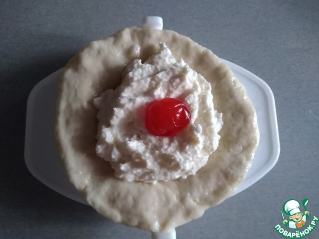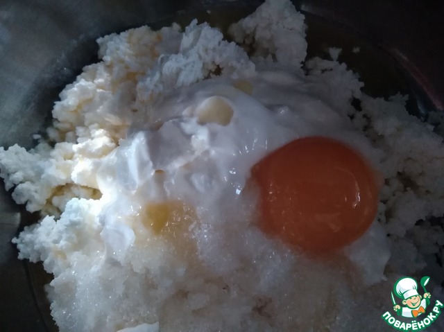 Смешиваем все ингредиенты для творожной начинки. Творог предварительно протереть через сито, чтобы не было комочков.