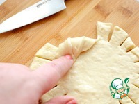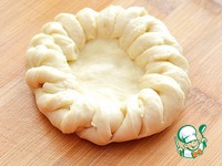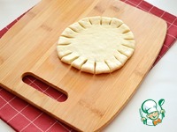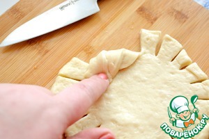 Формируйте борта ватрушки подворачивая разрезанный край теста внутрь как показано на фото. |