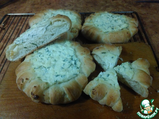 Рецепт "Ватрушки с творогом, брынзой и зеленью":