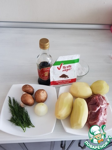 Ингредиенты для «Жареный картофель с мясом и грибами»: