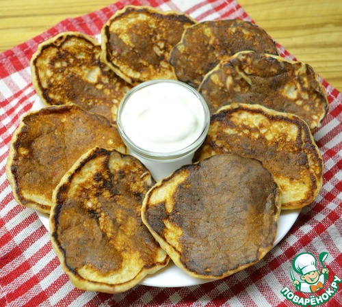 Вкусные, ароматные оладьи. В зависимости от используемых йогурта и хлопьев, вы можете менять их вкус.