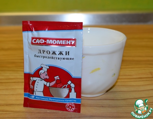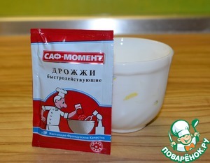В теплой воде размешать сахар и дрожжи. Поставить в теплое место на 10 минут.