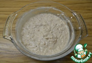 В йогурт вбить яйцо, затем добавить опару. Вмешать муку. Посавить в тепло на 25 минут