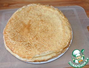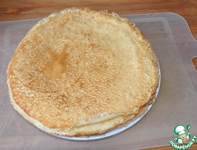 Я, правда, немного отступил от рецепта: сделал блины отсюда https://www.povarenok.ru/recipes/show/149391/, сахара только меньше положил и без ванили, конечно.