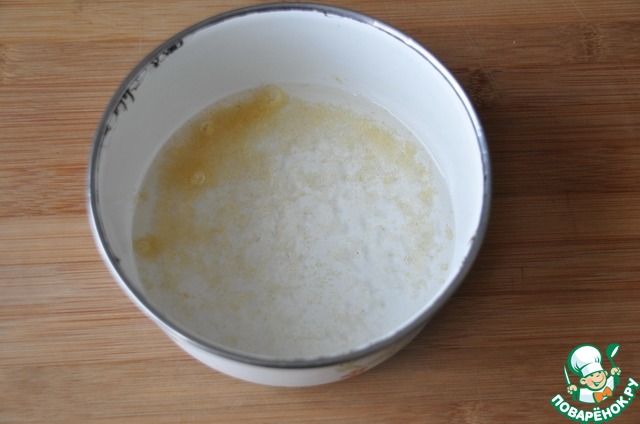 Готовим начинку. Заранее замачиваем желатин в воде. Действуем по инструкции на упаковке.
