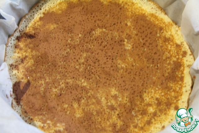 Следующий блин смазать растопленным сливочным маслом и слегка присыпать через сито порошком какао.