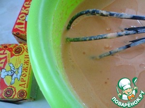 Добавлять частями просеянную муку и замешивать тесто без комочков, при помощи венчика.