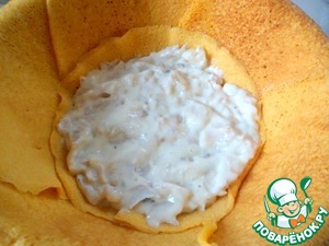 Выкладываем первую начинку - рыбную.