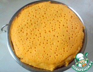 Сразу не вынимать из формы, пусть постоит на столе минут 15-20. Затем перевернуть его на тарелку.