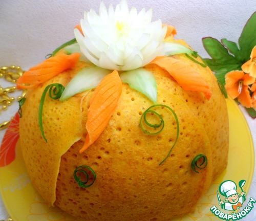 Рыба в соусе и, когда пирог перевернется, то соус будет стекать вниз, пропитывая пирог. -