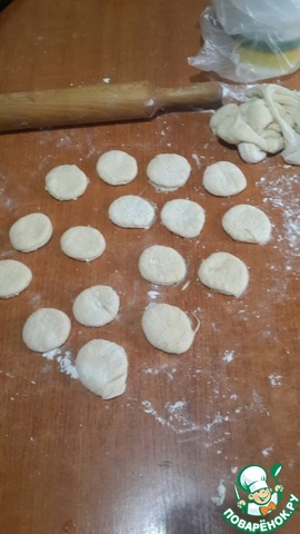 Как тесто наше поднимется, нужно тесто обмять и раскатать пласт. Выдавить кружки небольшого диаметра.