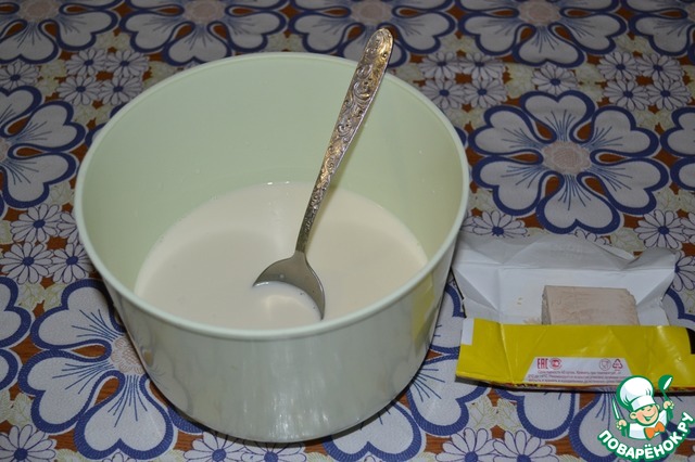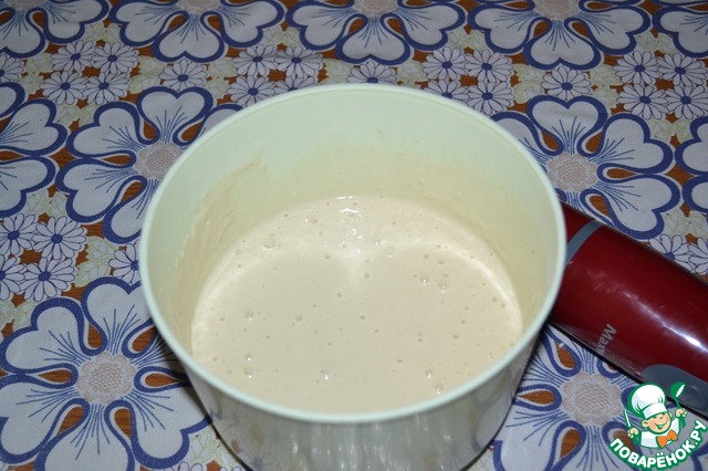 Влить тёплые сливки, добавить сахар, соль, ванильный сахар, хорошо перемешать. В эту массу раскрошить дрожи и растворить их.
