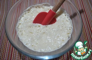 В теплом молоке развести дрожжи, сахар и 2 ст. л. муки.