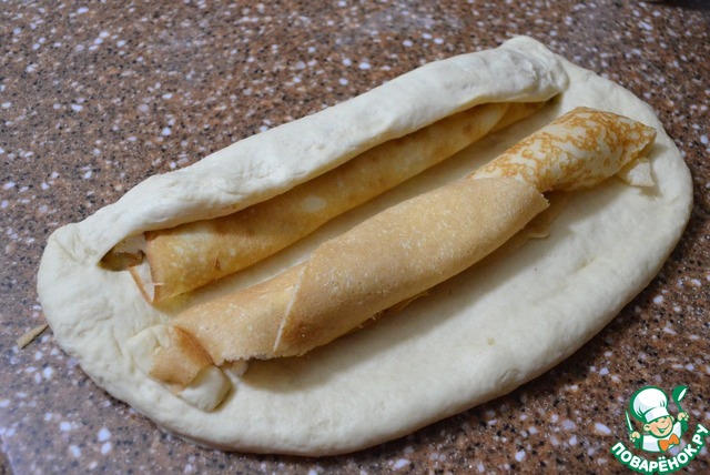 Вот уж и не едятся блины, даже с икрой надоели. Что же делать, как соблюсти традиции - на Масленой неделе - хоть лопни, а блин - ежедневно. А давайте ка, чуть пошутим, спрячем блины в батон, похулиганим немного. Согласны?! Тогда вперед.