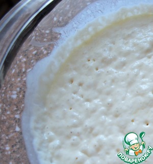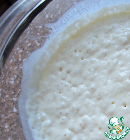 теплый кефир, дрожжи, сахар и 150 г. муки.