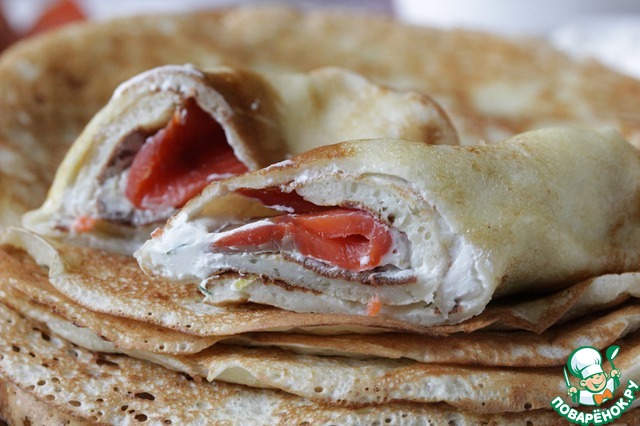 Мягкие и пухлые дрожжевые блины отлично сочетаются с различными несладкими добавками. Отличный вариант для завершения Масленицы - сытно, вкусно и вполне празднично!