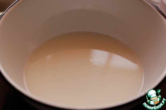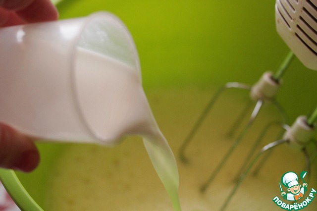 Влить половину оставшегося молока и растопленное сливочное масло.