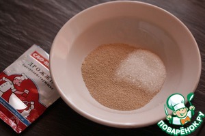 Отмерить необходимое количество дрожжей и 1 ч. л. сахара.