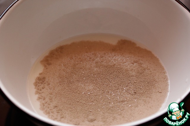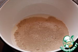 Всыпать дрожжи и сахар в теплое молоко, перемешать и оставить в тепле до образования пышной "шапочки".