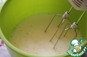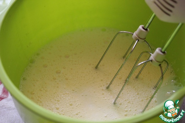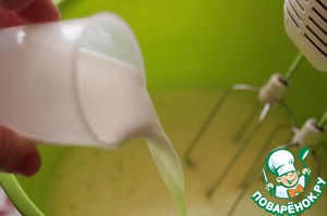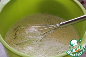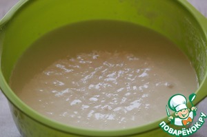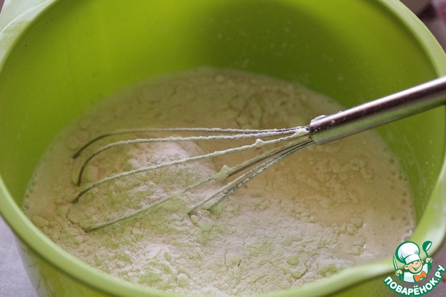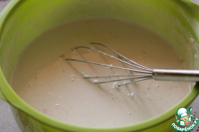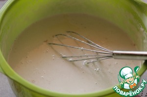 Перемешивать венчиком, постепенно вливая оставшееся молоко.