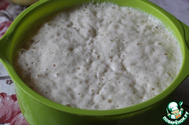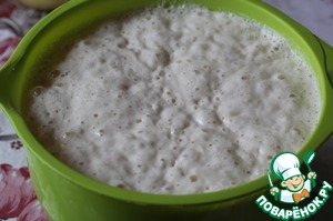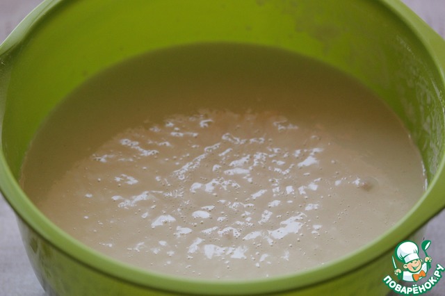 Добавить к тесту дрожжевую смесь, аккуратно, но тщательно перемешать.
