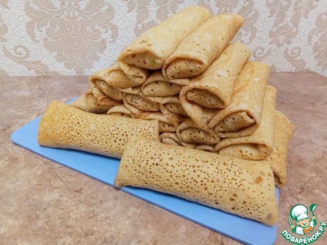 Рецепт «Блины, фаршированные яйцом, рисом и луком»: