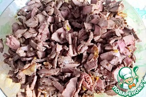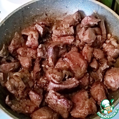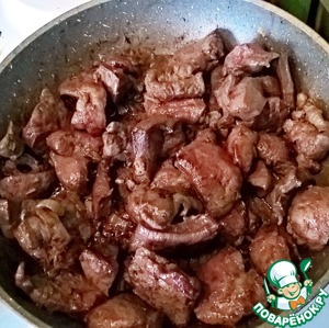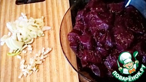Печень, лук и чеснок тушить до готовности печени (10 минут)