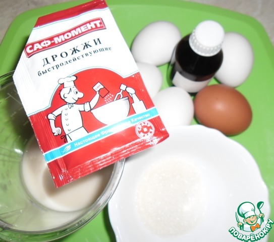 - Дрожжи (с горкой. Сухие быстродействующие дрожжи «САФ-МОМЕНТ» 11 г (в красной упаковке)) — 1 ч. л.