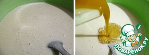 Яйца взбить в крепкую пену, аккуратно влить в тесто, соединить до однородной массы. Дайте тесту отдохнуть 5-10 минут и -