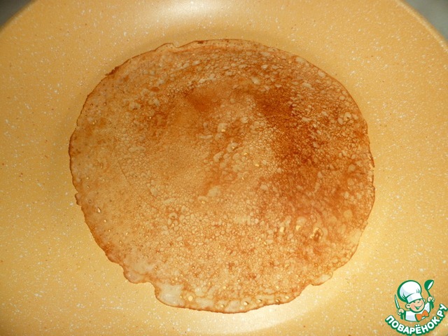 Подошедшее тесто перемешать один раз и выпекать блинчики с двух сторон. Пекла на двух разных сковородках, блинчики снимаются отлично. Меняется только узор на них.
