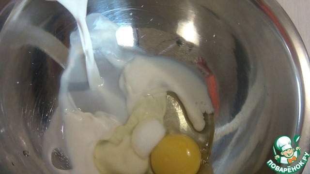 Часть молока (150 мл) подогреть, чтоб было теплое. Добавить дрожжи (сухие быстродействующие дрожжи «САФ-МОМЕНТ») и сахар. Перемешать, оставить минут на 15 активироваться.