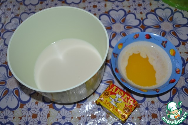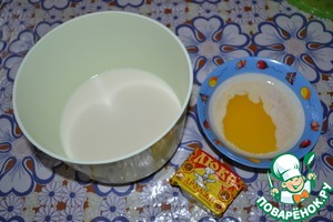 В тёплом молоке развести дрожжи. Сливочное масло растопить.