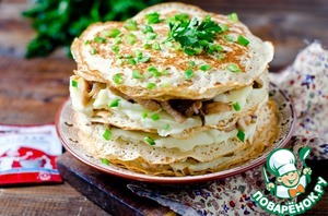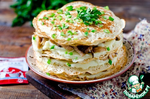Рецепт «Блинный пирог с курицей и грибами»: