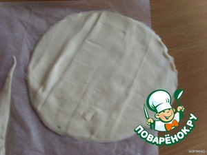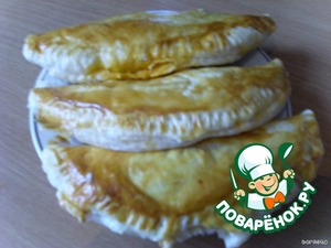 • В середину кладём начинку, закрываем сверху, смазываем желтком, и в духовку на 20-25 минут, при температуре 180 градусов.