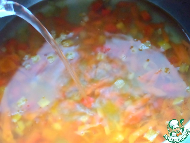 Затем овощную пассеровку заливаем водой.