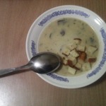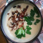 до пюре образного состояния, влейте сливки. Добавьте в суп обжаренный лук и грибы, суп прогрейте. -