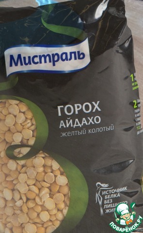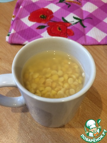Тем временем, кипятком заливаю горох (у меня горох «Айдахо» желтый колотый от Мистраль), чтобы он успел набухнуть и не отнимал у нас много времени на варку.