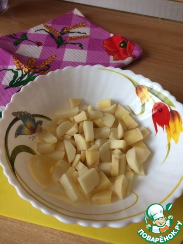 Необходимо попробовать горох, если он почти сварился, отправляем в суп картофель.