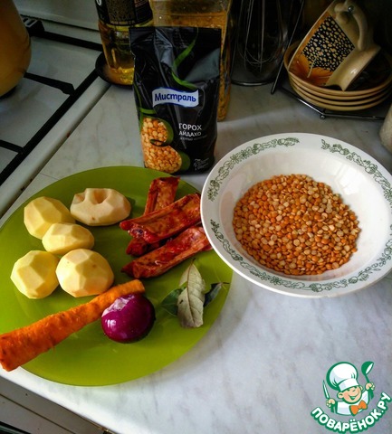 Ингредиенты для «Гороховый суп с ребрышками и сухариками»:
