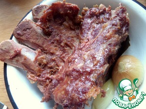Кость отложить. Когда немного остынет, отделить от кости мясо.