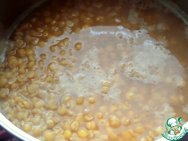 Когда горох будет в супе готов, вынуть примерно 5-6 ложек.