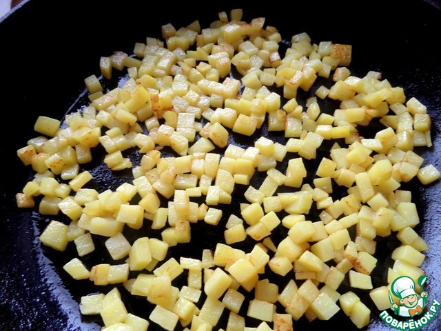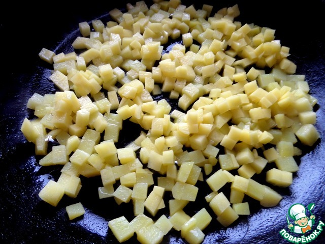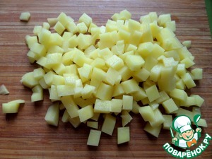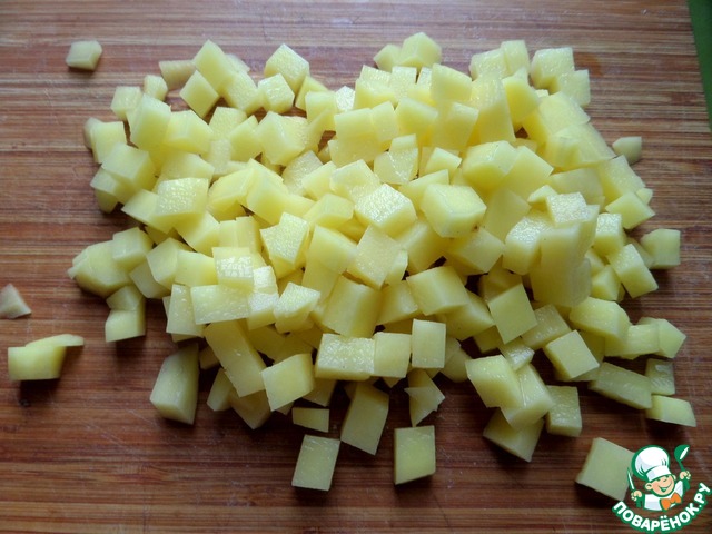 Картофелины измельчить мелким кубиком.
