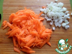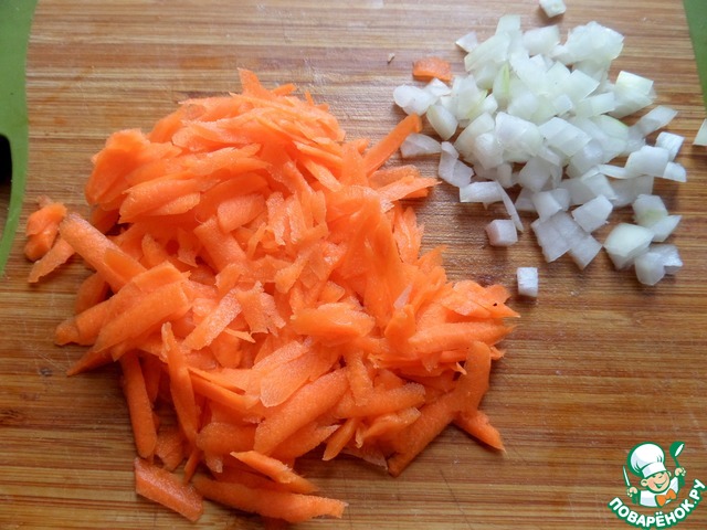 Морковь натереть, половинку луковицы нарезать.