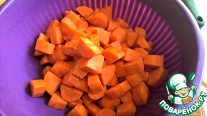 Тыкву нарезаем кусочками 1.5 - 2 см