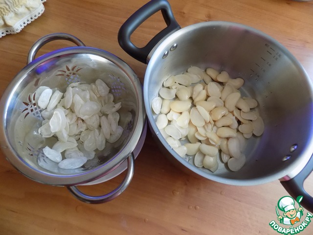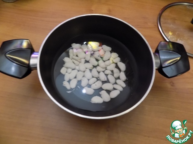 Фасоль требуется замочить хотя бы на 4 часа. Я её замочила на ночь.