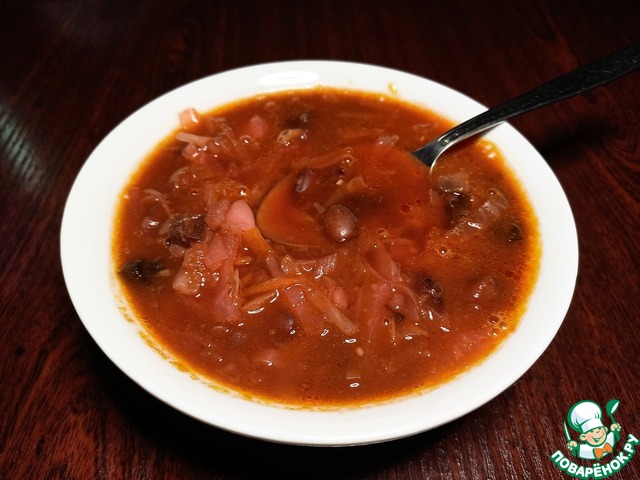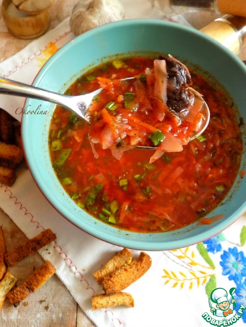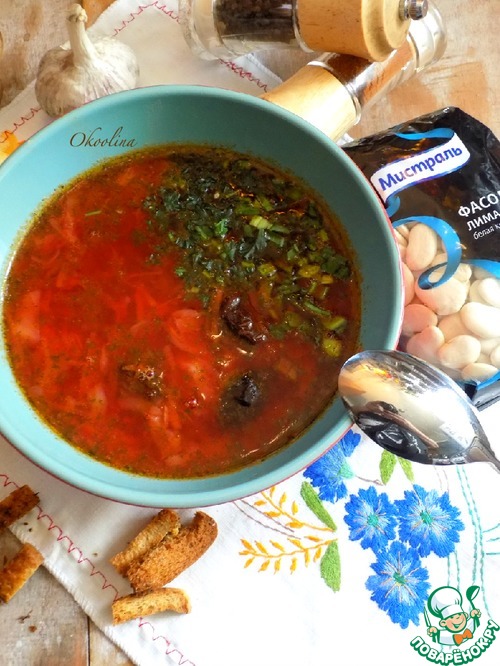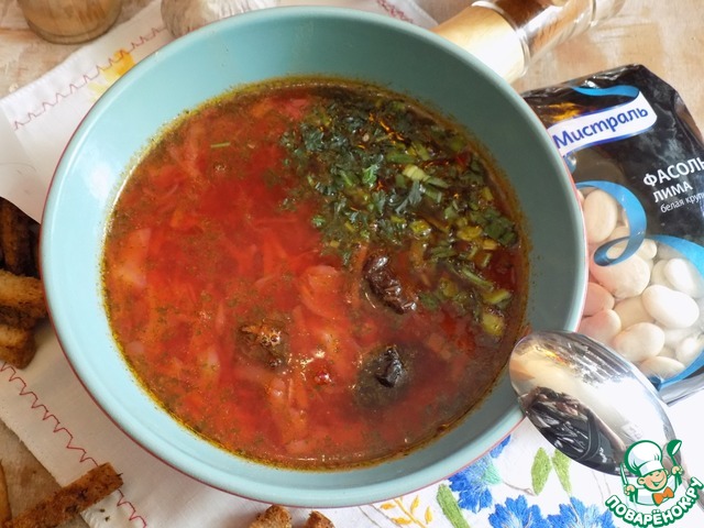 Рецепт «Постный борщ с фасолью и черносливом»: